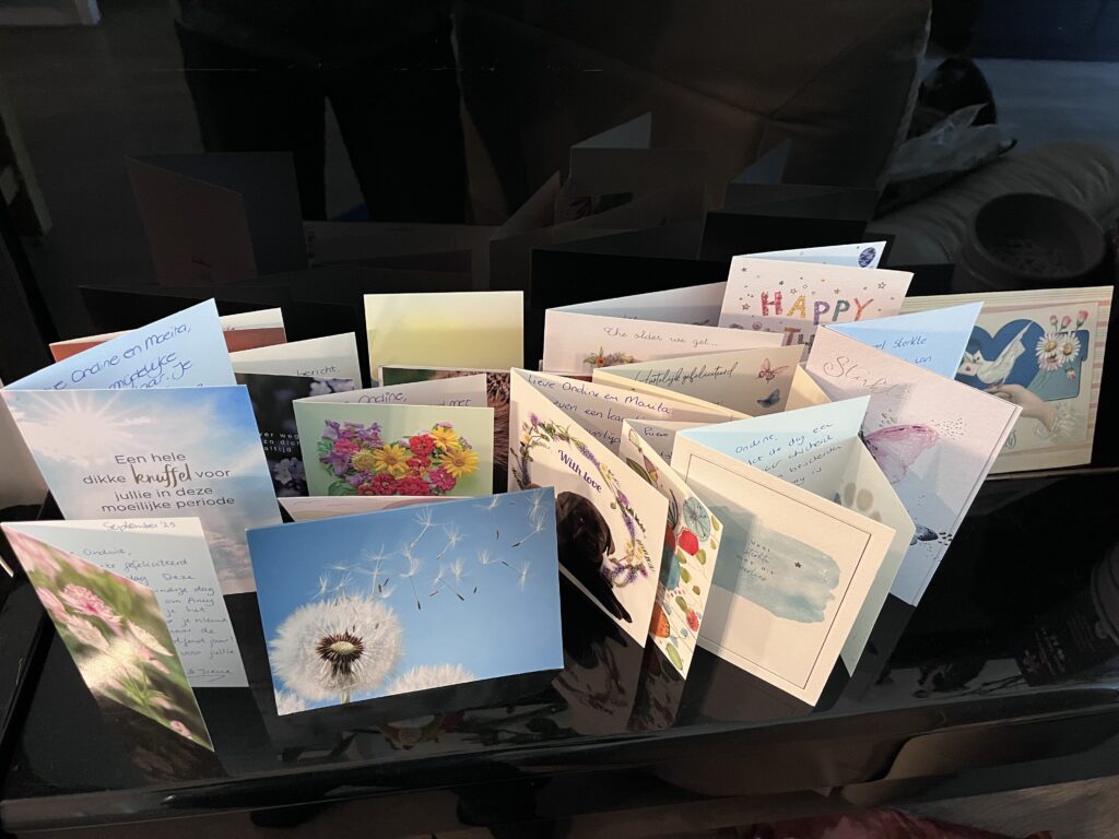 We ontvingen naast vele berichtjes via mail en app ook een groot aantal kaarten per post met heel veel lieve woorden.