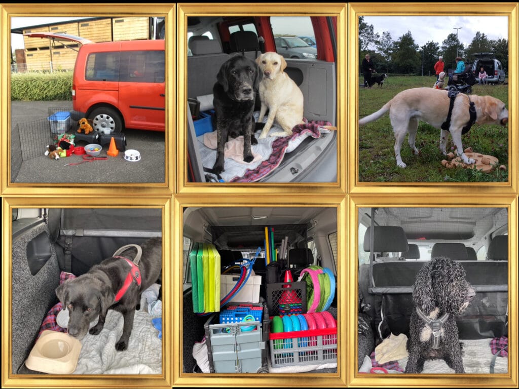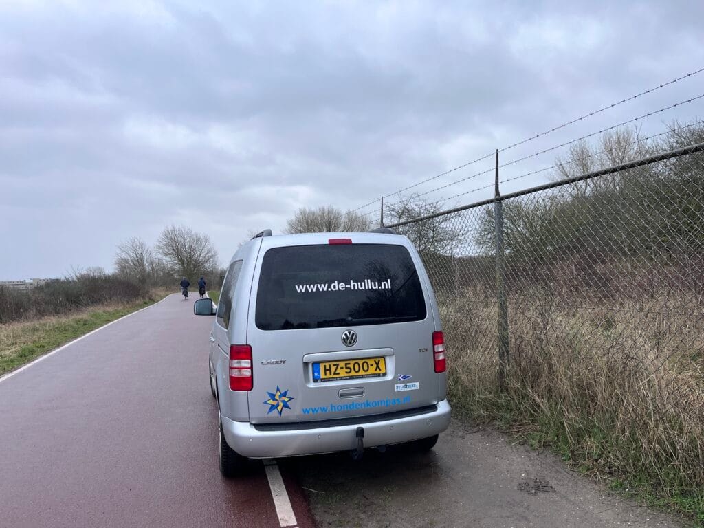 De grijze Caddy (nu 13 jaar oud) heeft 10 jaar lang (en dik 100000 km) dienst gedaan voor het werk, het vervoeren van Amy (en allerlei logeerhonden) en van hondenspullen voor trainingen. Mijn moeder reed uiteraard ook vaak mee.
